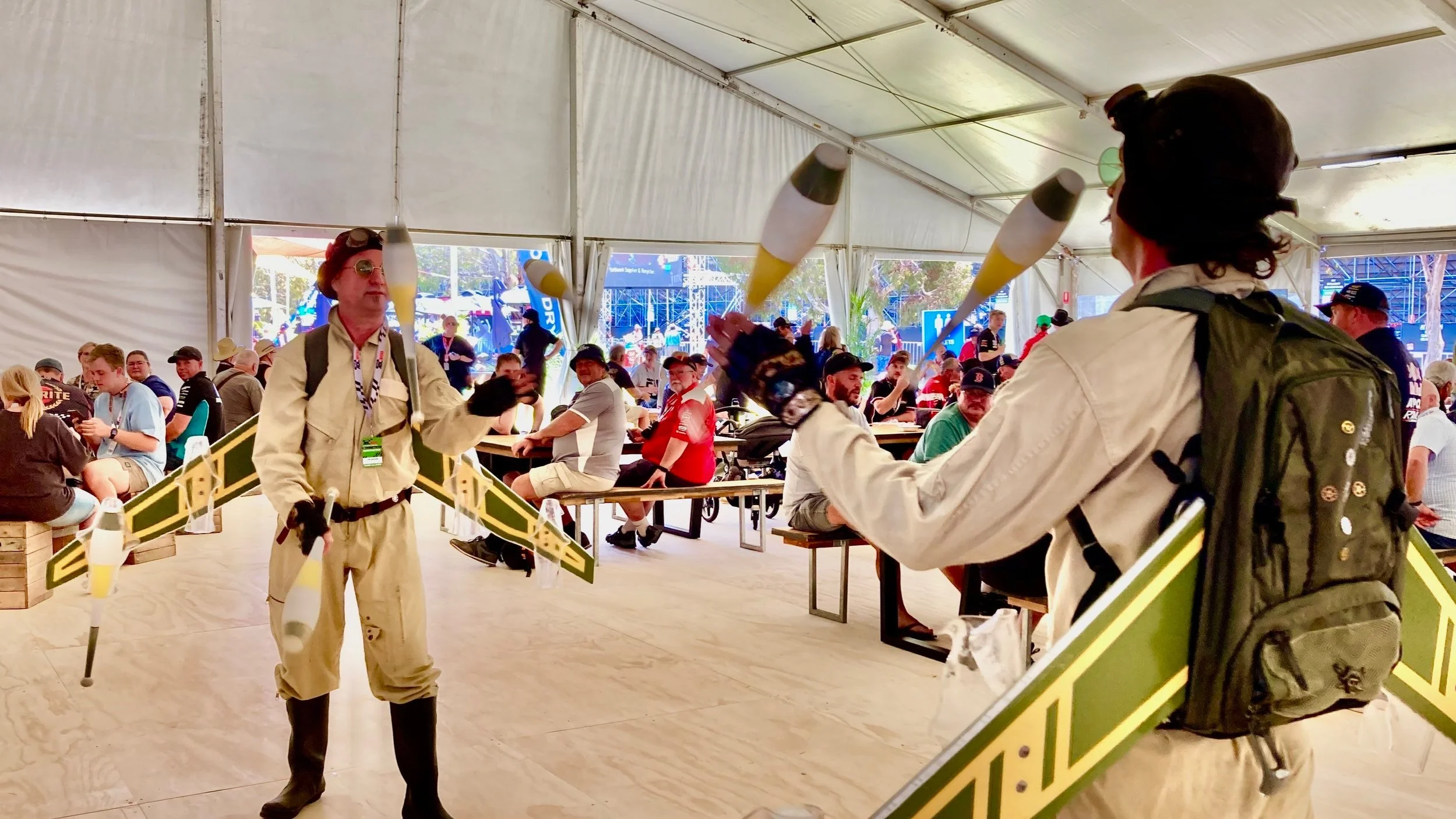The aviators are coming in for landing at an event near you! Clad in 1920s era vintage flight suits and looking dapper for any occasion. Watch as these peculiar pilots transform any space or function with their antics. Set up for spectacle they are decked out with LED lighting, built in stereo systems with soundscape accompaniment, not to mention highly skilled juggling tricks (sometimes around willing audience participants!) and finely tuned comical banter. The aviators can adapt to any situation and have been at hit at festivals, sporting events, functions and more across Australia and the world. Sure to be a hit hit at your next event too!